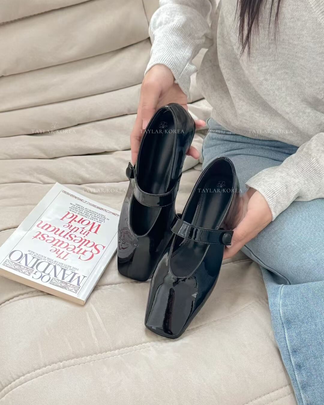 Đôi Mary Jane da bóng với thiết kế mũi vuông thời thượng và quai cài cổ điển mang đến vibe vừa thanh lịch vừa sang trọng, dễ dàng mix cùng váy midi, chân váy lụa hay quần jeans basic.